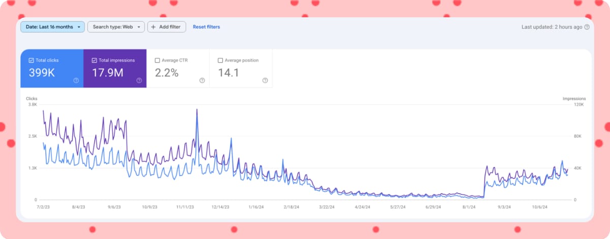 Here are some examples of the impressive organic traffic results Liane and the Foodie Digital team supported a few of its community members to achieve in the last 16 months, among 2024’s many frequent Google algorithm updates: