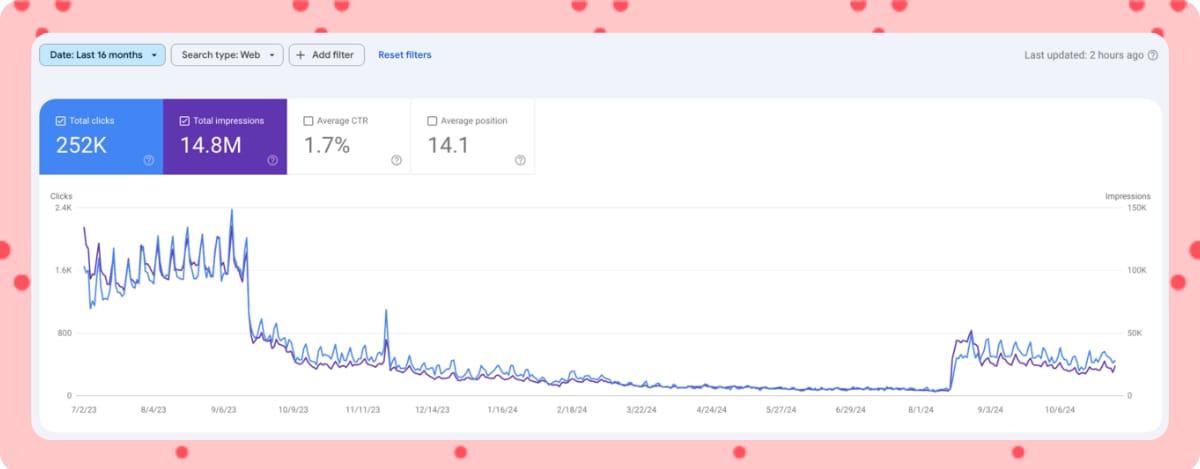 A pattern I’ve found is that recipe sites that have lost significant organic traffic in the past 2 years are always deeply over optimized.